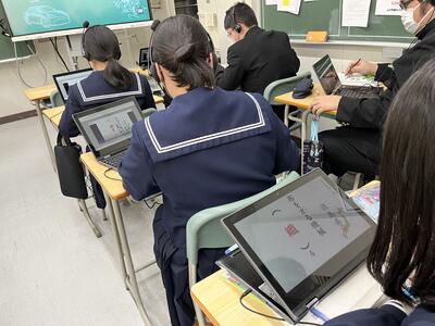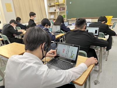 情報メディアリテラシーにも、様々なつけるべき力が必要な時代です。ネットやSNS、情報メディアや情報端末と私たちの生活を切り離すことが難しい世の中。インターネット、情報化社会を情報リテラシー・情報モラルを身につけて、正しく歩んでいく必要があります。どの学年でも、週に1回程度、数分間のタイピング練習ですが、タイピングの習得ソフトで楽しみながらタイピング練習をしています。ブラインドタッチもスピードも、若者の習得スピードには驚かされます。