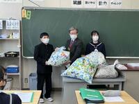 R5年2月20日(月)千歳中学校での社会福祉協議会への贈呈式の様子