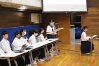 『輝想』~ひとりひとりの思いを輝かせて~を生徒会テーマとし、日々の委員会活動から学校行事の企画運営まで、主体性、行動力、そして、自治力のある生徒会活動を展開しています。「一人一人の個性とその想いを紡ぎあい、誰もが輝く学校を創ろう」という決意が、全校生徒に伝わり、「夢や志をもち、未来をたくましく生き抜く力」を育む姿に感動と勇気をもらっています。