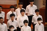 そして、3年生、「一人一人の想いを音符に」のせます。美しく響くソプラノ・アルト、アルトは地声になりやすいのですが、発声のすばらしさが際立ちます。そして、力強い低音で曲を支えるバス、テノールの伸びやかな高音の響き・・個性的な歌声がパートごとに集約され、各パートが、美しく響き合うことで、ドラマチックな曲想を表現する圧巻のハーモニー・・合唱の歌声やハーモニーからも感動は伝わるのですが、息遣い、指揮者を中心にした一体感、表情、まなざし・・歌声とともにそうした合唱にかける想いやみんなと創ってきたこれまでの努力みたいなものが聴く人の心を打ちます。