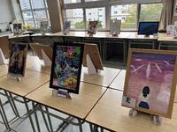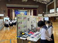 前日の今日、9月26日は、展示鑑賞の日。学年ごとに割り当てられた時間で、日常の教科の中で成果となる教科展示、教科横断的に学んだ総合的な学習の時間のプレゼン発表、はまなす学級のものづくりの数々・・。美術部作成のステージバックが掲げられた体育館、3階特別教室を活用した、文化部の作品展示の数々・・。日々の学びの中の文化的な活動、作品等を展示・鑑賞する素晴らしい機会となりました。修学旅行のテーマ学習のプレゼン画面に見入る1,2年生、美術部の素晴らしいイラスト絵画にくぎ付けの生徒、はまなすのバリエーション豊富なものづくり・・全校生徒一人一人の良さや強みが、作品や展示にあふれ、豊かな表現力を感じると同時に、そうした製作物を鑑賞し、楽しむ生徒達の感性にも、こころの豊かさを感じます。