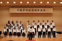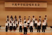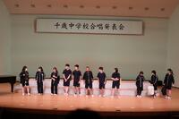 第76回千歳中学校文化祭は、北ガス文化ホールで、生徒会企画の開祭式でスタート。その後合唱発表会が行われました。大ホールでの演奏とあって緊張感も高まる中、トップバッターの1年1組「大切なもの」が1年生とは思えない素晴らしいハーモニーを披露。続く1年生各クラスも明るく元気よく、美しいハーモニーを響かせました。プレッシャーの高まる2年生は、さらに中堅学年としての威厳を見せ、クラスの特徴を活かした素晴らしい合唱。男子パートの美しさも際立っていたので、ソプラノ・アルトの透明感ある歌声とともに、さらなる期待の感じられる合唱でした。