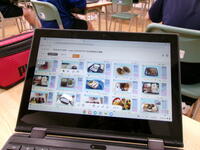 9月7日、玄関から入ってすぐの1階ホールに、50インチの液晶テレビが設置されました。モニター画面には前期の生徒たちの活躍の様子が次々とスライドショー形式で表示されています。