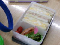 先日土曜日の「食育授業」を受け、本日は年に一度のお弁当の日。登校時から「家の人と一緒に作った」「全部自分で作ってみた」などの会話が弾みました。