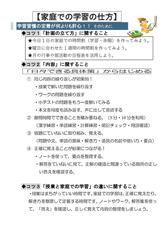 保護者の思いは、『時間の管理ができる中学生を育てます』