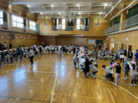 本日は夏休み前登校最終日、二小っ子集会がありました。校長先生のお話を聴いたり、各種大会で活躍した児童の表彰が行われたりしました。また、縦割り班交流でのジェスチャークイズもあり、体育館に集まったみんなで楽しい時間を過ごしました。