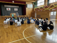 総合的な学習の時間で、アイヌ民族文化財団の方々を講師に招いてアイヌ民族の文化について学習しました。あいさつや地名、踊りなどを中心に学んだ2時間でした。