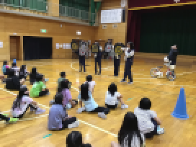 交通公園で2年生の交通安全教室がありました。この日は、正しい自転車の乗り方について実際に自転車に乗って学習しました。