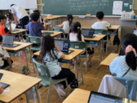 先日、5年生がオンラインで韓国・清州の小学校の児童と交流をしました。今回は、アイスブレイクのゲームなどを行いました。この交流は今後も続く予定です。