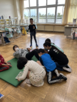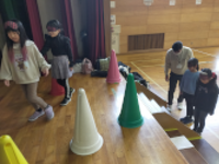 縦割り班で、班ごと様々な運動にチャレンジしました。定期的に行う予定です。