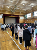 明日から2日間、5年生が宿泊学習ということで結団式を行いました。それぞれの係からの連絡や校長先生、教頭先生からもお話がありました。最後は、円陣を組んで気持ちを高めました。
