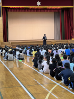 今日は、書記局(児童会企画)のじゃんけん王決定戦がありました。体育館に全校児童が集まり、書記局と対決して残った一人がジャンケン王と最後の勝負。見事、新しいチャンピオンが誕生しました。