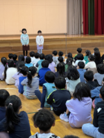 1年生を迎える会がありました。児童会書記が司会進行を務め、2年生から6年生まで各学年がそれぞれの出し物を発表しました。どの出し物も1年生にとって新鮮で、とても楽しんでいる様子でした。また、1年生もそれに応えてお礼のあいさつをしました。彼らの態度も立派で素晴らしかったです。最後に、6年生と1年生が一緒にアーチをくぐって退場しました。