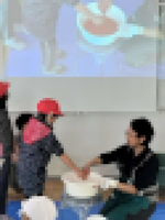 1年生は今日から給食がスタートです。待ちわびていた子も多く、一つ一つのメニューを運ぶだけでも楽しそうな様子が見られました。集中して食べていたので後ろから見守りました。