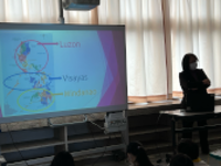 4年生の総合学習(世界を見つめよう)で、3回目はニュージーランド出身の女性を講師に迎えての学習を行いました。今回もまた新たな発見の時間となりました。食べ物の写真を見たときには「おいしそう!」「食べてみたい!」という声が上がりました。紙幣や硬貨も見せてもらい、日本のお金との違いを実際に感じることができました。