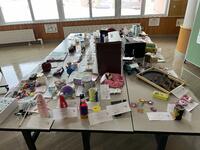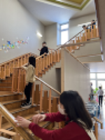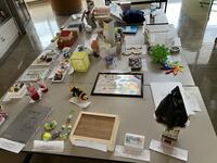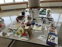 冬休みが終わり、16日から学校が再開しました。冬休み中に作成した作品をドリームステージに展示してあります。