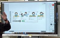 3年生から6年生と一部の特別教室で電子黒板が新しくなりました。タッチパネル式に変更され、インターネットに接続できるなど、これまでにはなかった機能が搭載されています。今後は全ての教室の電子黒板が新しくなる予定です。名前はバイシンクボードといいます。