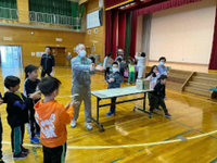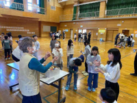 校長先生のお話や表彰式の後には、縦割り班でレクを行なっています。