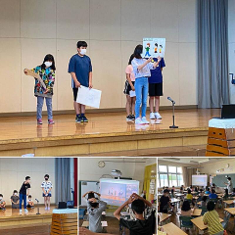 二小っ子集会 投稿日時 : 2022/07/22 編集長 カテゴリ: 夏休み前日の今日は、児童会主催の「二小っ子集会」がおこなわれました。各委員会からのお知らせの後、ジェスチャーゲーム・ポーズ真似ゲームもおこなわれました。