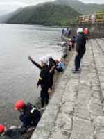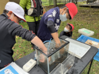 本日、5年生の見学体験学習がありました。名水公園で水質の調査をしたり、川で魚獲りをしたりしました。お昼を挟んで午後は、支笏湖についての動画を見たり、ビジターセンターを見学したりしました。