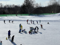 昨日、体育館で靴を履く練習をした1年生が、今日はさっそくリンクの上に立ちました。積雪も心配されていましたが、ほぼ快晴の中、小学校でのスケート学習がスタートし、とても素晴らしい一日となりました。これから回を重ねるごとにどんどん上達していくことと思います。