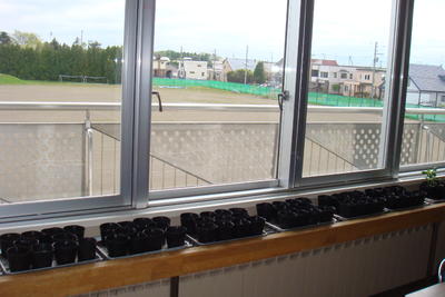 残念ながら 右はしに見えているかわいい芽は 3年生のひまわりです