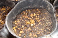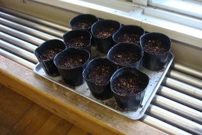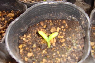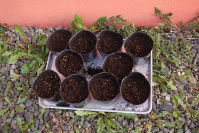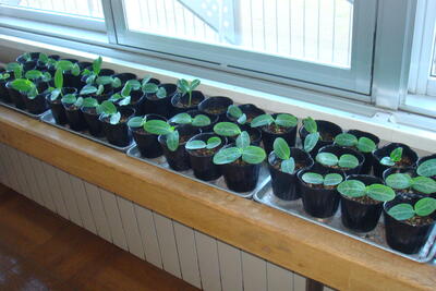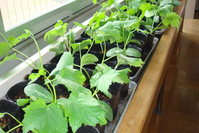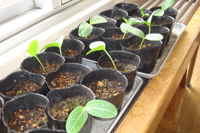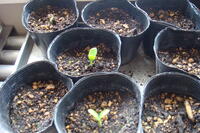 種まきから1か月たって、ようやく芽が出始めたヘチマも…