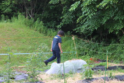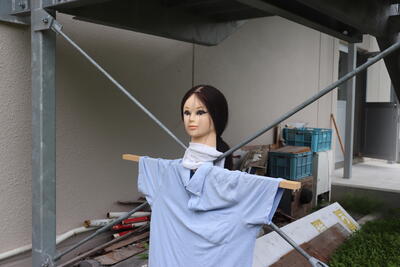 もうこれ以上はやめてほしい!ということで、業務技師さんがかかしを立てました。