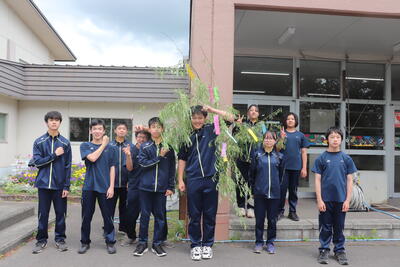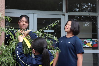 全校生徒でそれぞれが短冊に願いを込めて、七夕飾りをしました。
