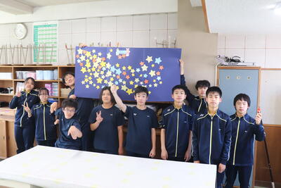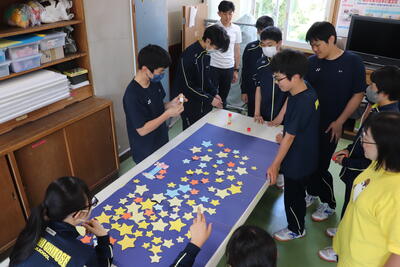 生徒会役員が教室・廊下に星を隠し、昼休みにみんなでさがしました。