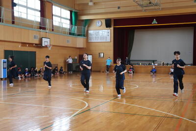 今日は東小学校体育館で小中合同体育「シャトルラン」を実施しました。