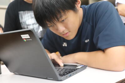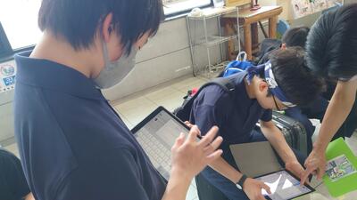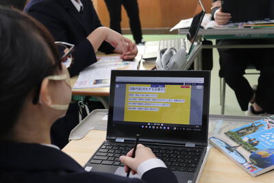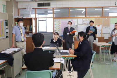 「先生方の指導の様子を見に来ます」と知らされているものの、参観者が来ると生徒はやはりドキドキはします。が、ドキドキしつつも活発に意見交換したり、集中して学習に没頭したりと前向きでした。