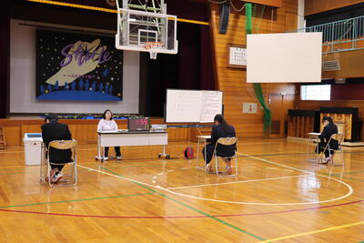 今日は体育館でバスケットボール、教室でタブレット端末利用(何をしてるかは…!?)、クラスみんなでトランプ、午後の授業に向けて黒板をきれいに整えるなど。