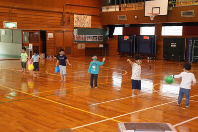 昼休みには、男子2名と先生方でバスケットをして遊んでいました。