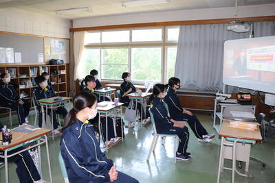 今日の6時間目に新入生歓迎会がありました。2・3年生が準備をして、委員会活動のことや部活動のことを1年生に説明しました。人数が少ないので、みんなで委員会活動を行い、みんなで部活動を盛り上げていきます。