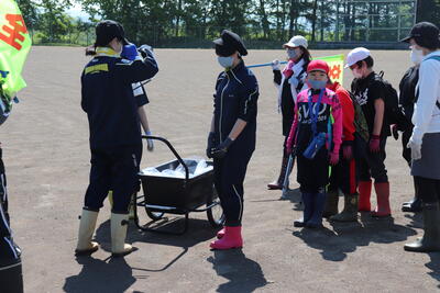 全員がそろって、JR南千歳駅で出発式を行いました。
