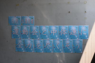 今月もまた、階段の躍場には6月の生活目標が掲示されていました。