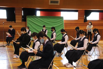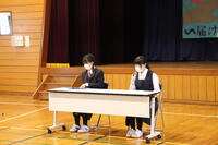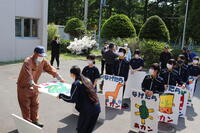 最後に、全校生徒がそれぞれに作製したポイ捨て防止などの看板を、環境保全会に設置してもらための贈呈式が行われ、すべてが無事に終了しました。