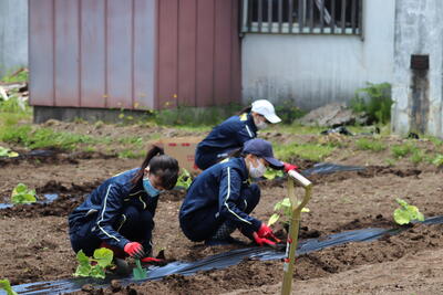カボチャの苗も植えました。秋祭りが開催されるか気になるところですが、立派なカボチャができるように生徒は頑張ってくれるでしょう。