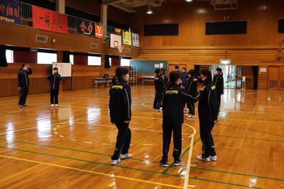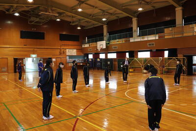 東千歳中学校では、登校後から8時10分までの時間、体育館で『朝トレ』をしています。体力向上を目指した取組です。