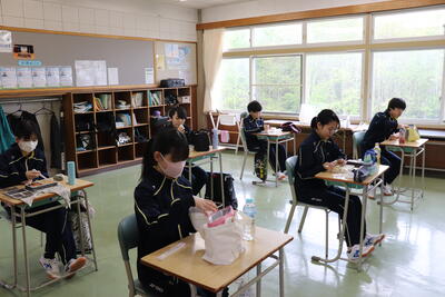 今日、本校で英語検定が行われています。