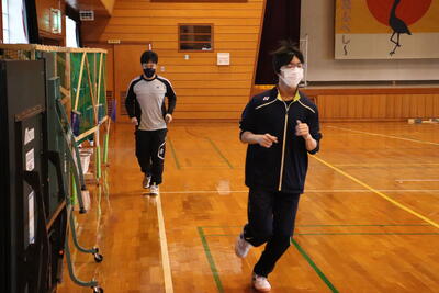 朝は1便と2便のスクールバス通学なので、1便で登校した子ども達が、登校後体育館でランニングやウォーキングをします。1便と2便は毎月入れ替わるので、朝トレは1ヶ月ずつとなります。