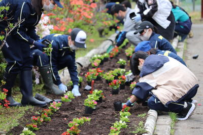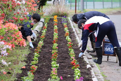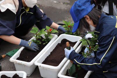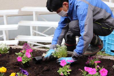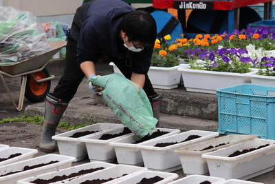 花壇担当の先生方も一緒に苗植えをしました。