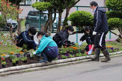 気温も高くもなく低くもなく、非常に心地よい天候の中、先生方と子どもたちで今年度の花壇作業が終了しました。