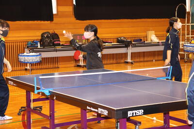 卓球部の練習に、小学生も参加しています。