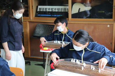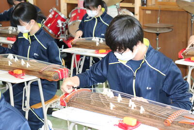 和太鼓と三味線の奏者の方をお招きし、体育館で行います。