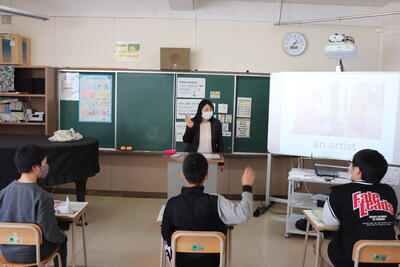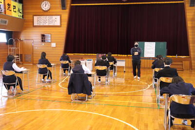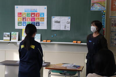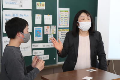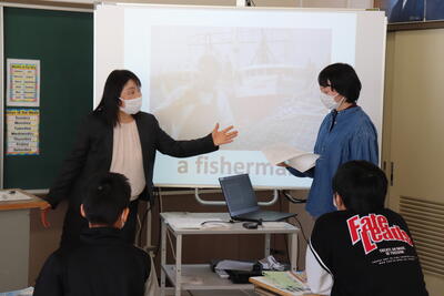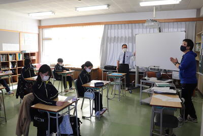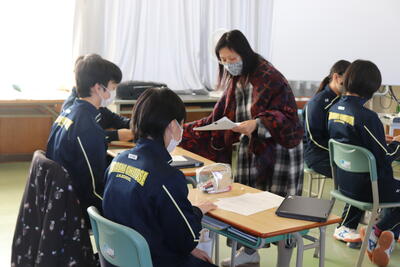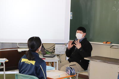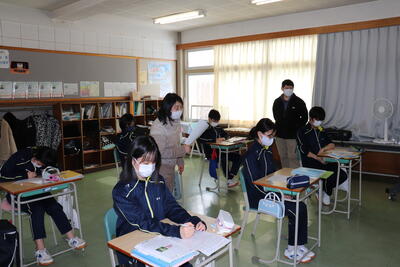 小学校でも外国語の授業が始まっていますが、中学校の先生の授業は初めてということで、やや緊張感がありながらも、リラックスした雰囲気で楽しそうに取り組んでくれました。