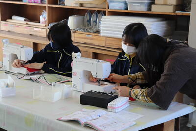 1年生の家庭科も『ミシンがけ』をしました。