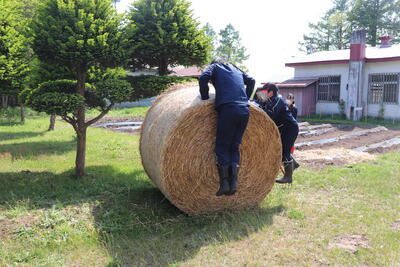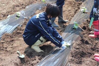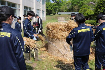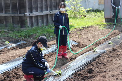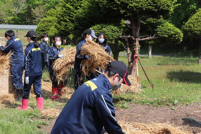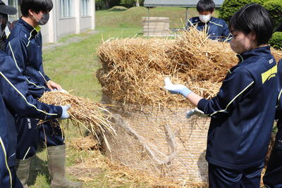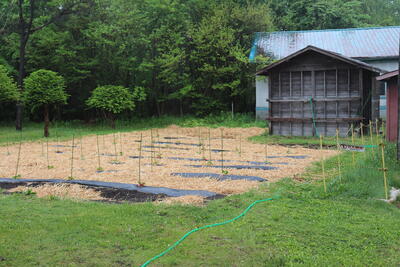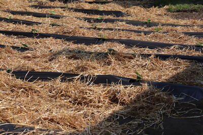 畑にまいた藁も、強風により少し飛ばされてしまいました。