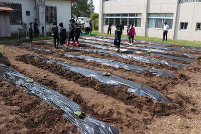 PTA常任委員会の保護者の皆さんにお越しいただき、花壇整備を子どもたちと一緒に行いました。